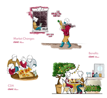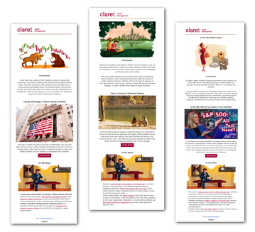 Witty and human-made illustrations for the bi-weekly finance newsletters of Claret Asset Management